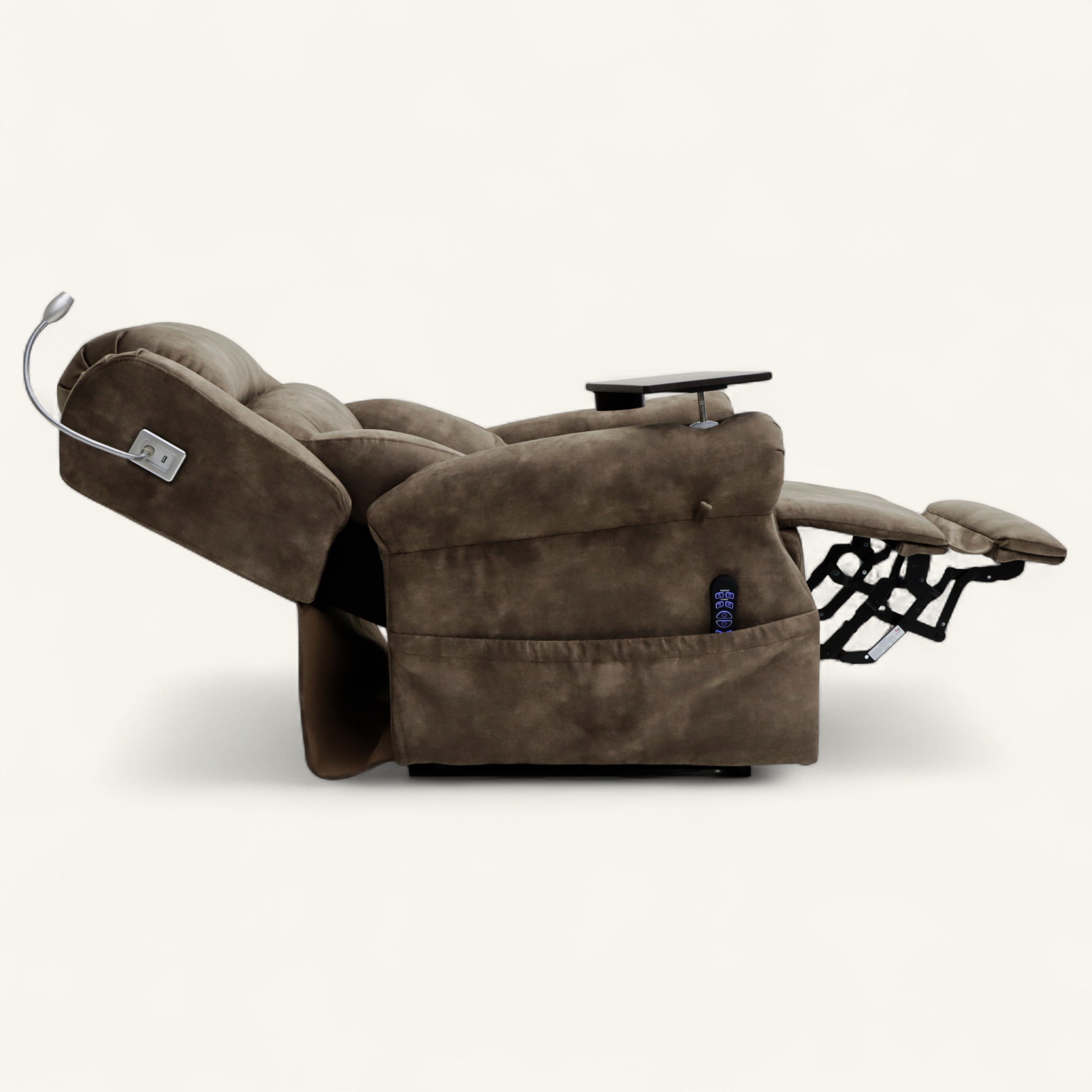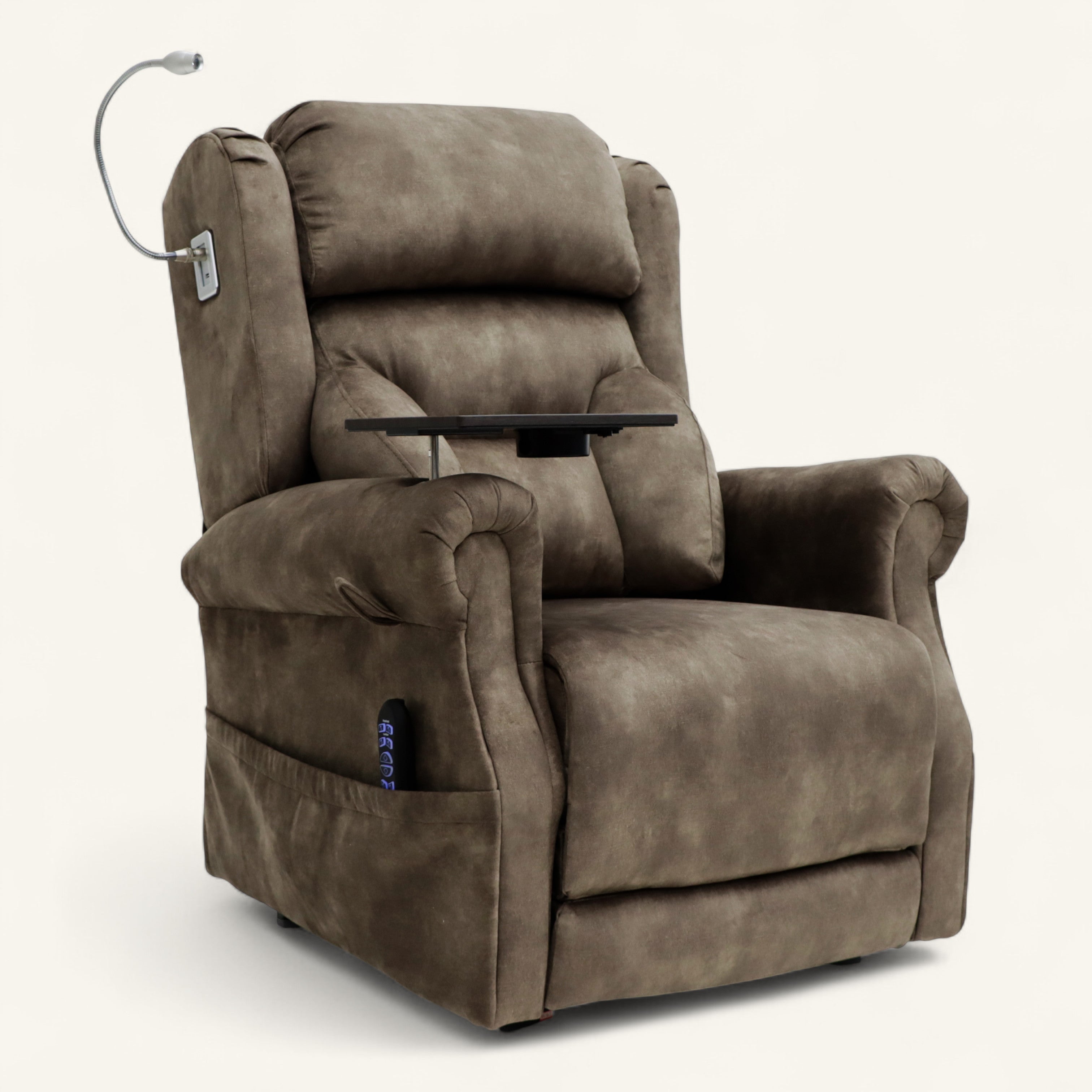 As the flagship in our luxury collection, the Highgrove is as comfortable as it is prestigious. Four motors allow independent control of the backrest, footrest, headrest, and lumbar position, as well as the rise and recline functions. The thick lateral pillows are a customer favourite for support and comfort, whilst the integrated tray table, cup holder, and reading light make the Highgrove the perfect chair for long evenings in.
